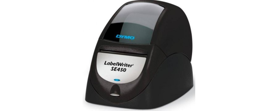 Dymo LabelWriter SE450 understøtter computertilslutning via seriel port eller USB. Med LabelWriter Print Server er den nem at dele for flere brugere. Og den er hurtig, kompakt, driftsikker og næsten lydløs.